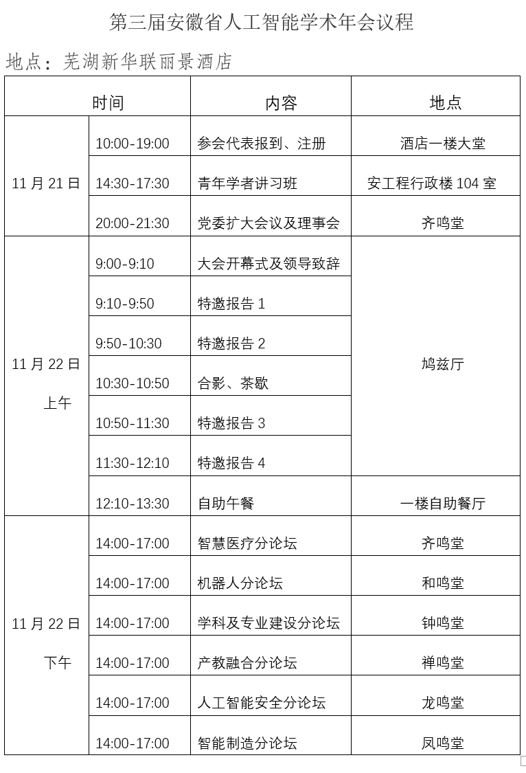 附件1:第三届安徽省人工智能学术年会议程