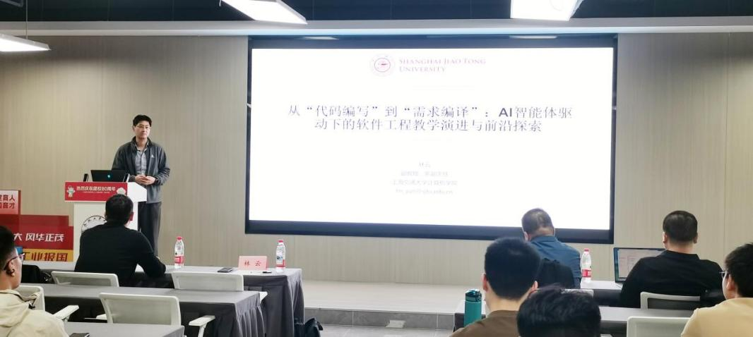 上海交通大学国家级青年人才林云教授以《从 “代码编写” 到 “需求编译”:AI 智能体驱动下的软件工程教学演进与前沿探索》为题,系统解析 AI 智能体对软件工程教育的重构路径。林云教授从软件工程宏观视角出发,提出 AI 时代的 “需求编译” 新范式,指出 AI 浪潮下软件工程对代码实现的关注度有所降低,对需求精准落地与验证的要求大幅提升,人才培养的核心重心与教学重点需随之动态调整。