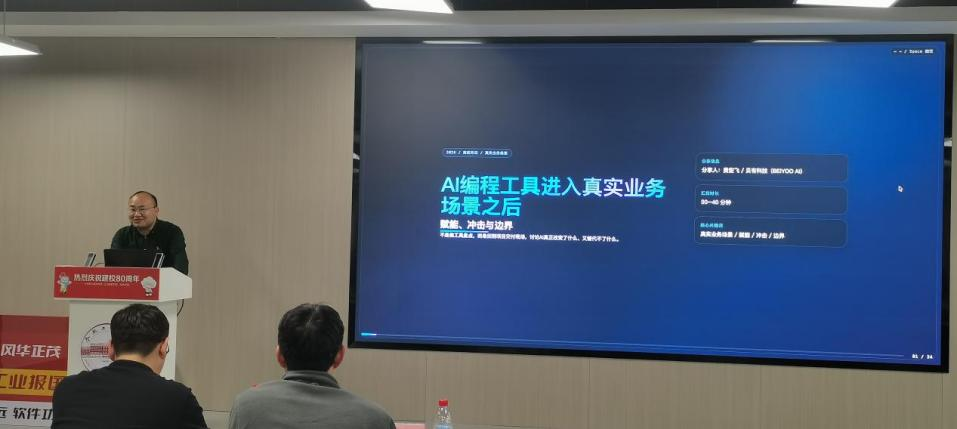 合肥贝有科技创始人费宏飞分享AI 编程工具落地场景的赋能与边界,主要从若干真实案例出发,以OPC的视角来重新看到软件工程和软件开发,突出AI浪潮的巨大潜力和动能,强调对于传统软件工程的变革,以及适应新变革的必要性和紧迫性。